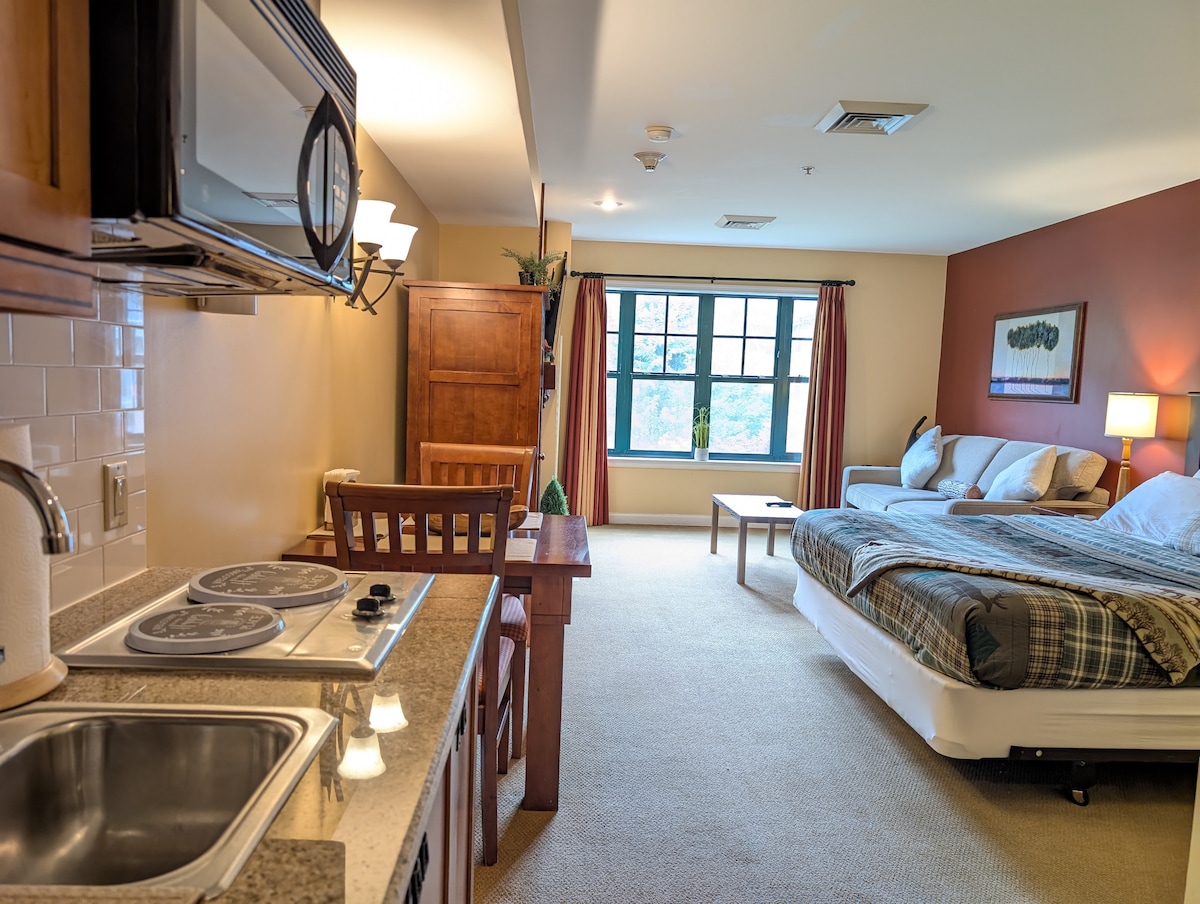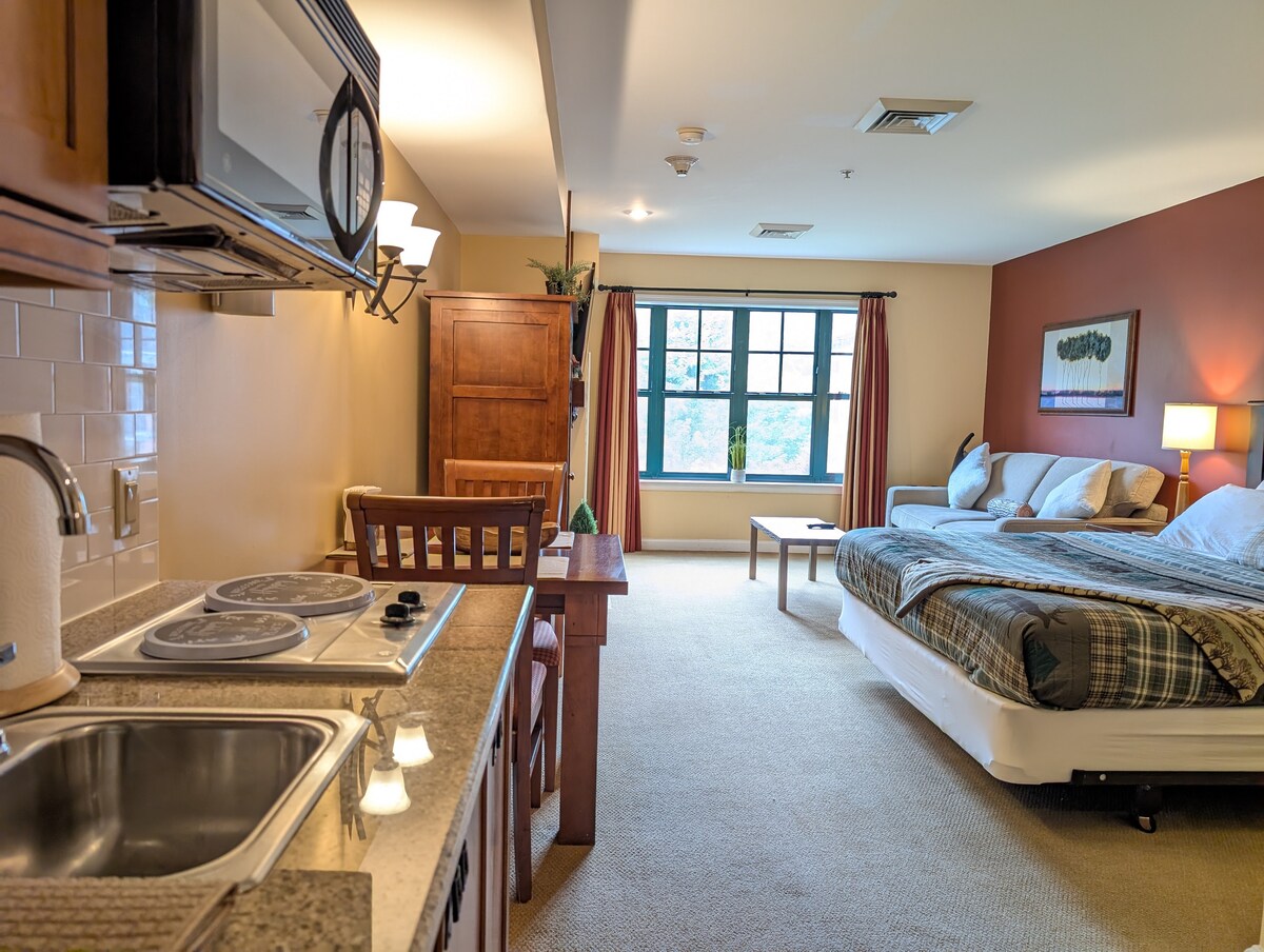 Rare slope side interior Mt View Studio. Great location with central resort views